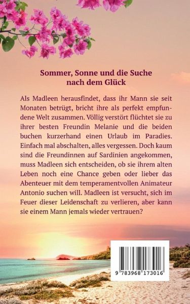 Sommer, Sonne und die Suche nach dem Glück Der gefühlvolle Liebesroman mit Urlaubsfeeling Als Madleen herausfindet, dass ihr Mann sie seit Monaten betrügt, bricht ihre als perfekt empfundene Welt zusammen. Völlig verstört flüchtet sie zu ihrer besten Freundin Melanie und die beiden buchen kurzerhand einen Urlaub im Paradies. Einfach mal abschalten, alles vergessen. Doch kaum sind die Freundinnen auf Sardinien angekommen, muss Madleen sich entscheiden, ob sie ihrem alten Leben noch eine Chance geben oder lieber das Abenteuer mit dem temperamentvollen Animateur Antonio suchen will. Madleen ist versucht, sich im Feuer dieser Leidenschaft zu verlieren, aber kann sie einem Mann jemals wieder vertrauen? Erste Leserstimmen ¿Sehr inspirierender Liebesroman über einen Neuanfang auf Sardinien.¿ ¿Weckt Urlaubsgefühle und Schmetterlinge!¿ ¿Eine starke Protagonistin und wahre Gefühle ¿ großartiges E-Book!¿ ¿Durch und durch paradiesische Liebesgeschichte, bei der auch das Thema Freundschaft nicht zu kurz kommt.¿ ¿Gefühlvolle und romantische Feel-good-Romance.¿