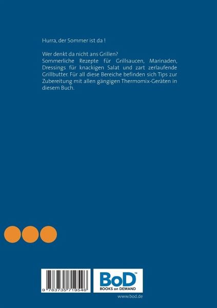 Hurra, der Sommer ist da !Wer denkt da nicht ans Grillen?Sommerliche Rezepte für Grillsaucen, Marinaden, Dressings für knackigen Salat und zart zerlaufende Grillbutter. Für all diese Bereiche befinden sich Tips zur Zubereitung mit allen gängigen Thermomix-Geräten in diesem Buch.