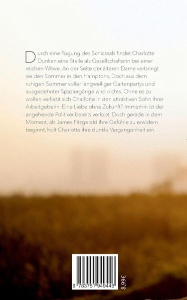 Durch eine Fügung des Schicksals findet Charlotte Dunken eine Stelle als Gesellschafterin bei einer reichen Witwe. An der Seite der älteren Dame verbringt sie den Sommer in den Hamptons. Doch aus dem ruhigen Sommer voller langweiliger Gartenpartys und ausgedenter Spaziergänge wird nichts. Ohne es zu wollen verliebt sich Charlotte in den attraktiven Sohn ihrer Arbeitgeberin. Eine Liebe ohne Zukunft? Immerhin ist der angehende Politiker bereits verlobt. Doch gerade in dem Moment, als James Fitzgerald ihre Gefühle zu erwiedern beginnt, holt Charlotte ihre dunkle Vergangenheit ein.