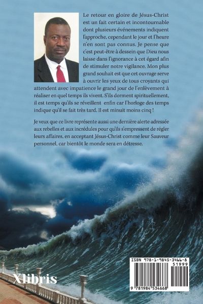 Le retour en gloire de Jésus-Christ est un fait certain et incontournable dont plusieurs évènements indiquent l'approche, cependant le jour et l'heure n'en sont pas connus. Je pense que c'est peut-être à dessein que Dieu nous laisse dans l'ignorance à cet égard afin de stimuler notre vigilance. Mon plus grand souhait est que cet ouvrage serve à ouvrir les yeux de tous croyants qui attendent avec impatience le grand jour de l'enlèvement à réaliser en quel temps ils vivent. S'ils dorment spirituellement, il est temps qu'ils se réveillent enfin car l'horloge des temps indique qu'il se fait très tard. Il est minuit moins cinq ! Je veux que ce livre représente aussi une dernière alerte adressée aux rebelles et aux incrédules pour qu'ils s'empressent de régler leurs affaires, en acceptant Jésus-Christ comme leur Sauveur personnel, car bientôt le monde sera en détresse.