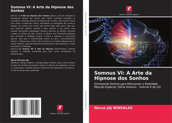 Somnus VI: A Arte da Hipnose dos Sonhos explora a arte de manipular o inconsciente através dos sonhos para induzir mudanças profundas na consciência. Utilizando técnicas de hipnose dos sonhos, este volume ensina como ativar a lucidez dos sonhos, descodificar as mensagens dos sonhos e navegar nos mundos dos sonhos para extrair lições vitais para a vida real. Com exercícios práticos, permite a todos dominar a sua mente, curar traumas, desenvolver capacidades criativas e melhorar as relações. Acessível a todas as esferas da vida, Somnus VI oferece uma ferramenta poderosa para reinventar a realidade, superar o stress e promover o crescimento pessoal. Seja para a transformação interior ou para o desenvolvimento exterior, a hipnose dos sonhos está a tornar-se um método indispensável no mundo moderno, capaz de influenciar positivamente a vida quotidiana, a saúde emocional e a realização.Seguir-se-áo Somnus VII: A Arte da Hipnose Holoemocional, fundindo emoções e realidade aumentada para abrir novas perspectivas de transformação.