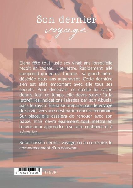 Elena fête tout juste ses vingt ans lorsqu'elle reçoit en cadeau, une lettre. Rapidement, elle comprend qui en est l'auteur : sa grand-mère, décédée deux ans auparavant. Cette dernière s'en est allé emportant avec elle tous ses secrets. Pour découvrir ce qu'elle lui cache depuis tout ce temps, elle devra suivre "à la lettre", les indications laissées par son Abuela. Sans le savoir, Elena se prépare pour le voyage de sa vie, vers une destination encore inconnue. Sur place, elle essaiera de renouer avec son passé, mais devra également tout mettre en oeuvre pour apprendre à se faire confiance et à s'écouter.Serait-ce son dernier voyage, ou au contraire, le commencement d'un nouveau...