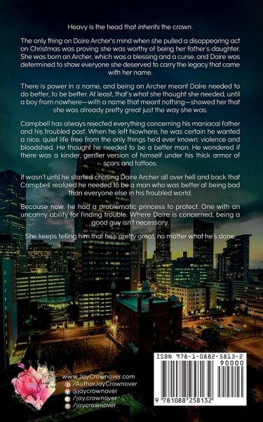 Heavy is the head that inherits the crown. The only thing on Daire Archer's mind when she pulled a disappearing act on Christmas was proving she was worthy of being her father's daughter. She was born an Archer, which was a blessing and a curse, and Daire was determined to show everyone she deserved to carry the legacy that came with her name. There is power in a name, and being an Archer meant Daire needed to do better, to be better. At least, that's what she thought she needed, until a boy from nowhere-with a name that meant nothing-showed her that she was already pretty great just the way she was. Campbell has always rejected everything concerning his maniacal father and his troubled past. When he left Nowhere, he was certain he wanted a nice, quiet life free from the only things he'd ever known: violence and bloodshed. He thought he needed to be a better man. He wondered if there was a kinder, gentler version of himself under his thick armor of scars and tattoos. It wasn't until he started chasing Daire Archer all over hell and back that Campbell realized he needed to be a man who was better at being bad than everyone else in his troubled world. Because now, he had a problematic princess to protect. One with an uncanny ability for finding trouble. Where Daire is concerned, being a good guy isn't necessary. She keeps telling him that he's pretty great, no matter what he's done.