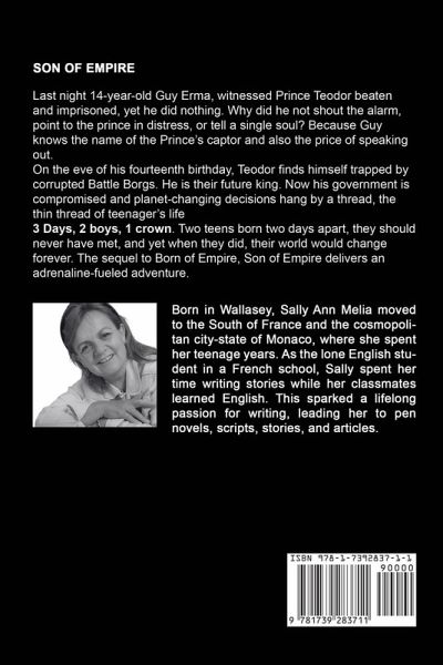 Son of Empire Enter a future where humans inhabit twelve planets of the Dodecahedral Empire and Earth is protected by the Space Defense force called the Dome Militant. Last night, 14-year-old Guy Erma witnessed Prince Teodor beaten and imprisoned, yet he did nothing. Why did he not shout the alarm, or tell a single soul then or afterwards? Because Guy knows the name of the Prince's captor, he is the same person who will sign Guy's application to accept him into the Dome Militant. If Guy does not want to compromise his own future, who can he tell? Awakening on the eve of his fourteenth birthday, Teodor finds himself trapped by corrupted Battle Borgs cruelly tormenting their rightful king. Now his government is compromised, and planet-changing decisions hang by a thread, the thin thread of a young boy's life. 3 days, 2 boys, 1 crown. Two teens born two days apart, they should never have met, and yet when they did, their world would change forever. The sequel to 13. Born of Empire, 14. Son of Empire is an adrenaline-fueled adventure. Reviews for 13. Born of Empire. ¿¿¿¿¿ An engaging sci-fi adventure (...) a balanced mix of humour and heartbreak. ¿¿¿¿¿ The world is wonderfully crafted with amazing characters and lies, betrayal, & corruption. ¿¿¿¿¿ Unable to put the book down.