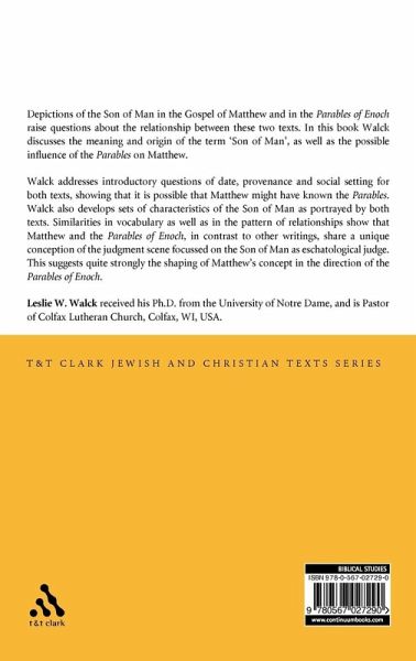 This book examines all the relevant passages containing the Term "Son of Man" in both Matthew and the Parables of Enoch. Depictions of the Son of Man in the Gospel of Matthew and in the Parables of Enoch ( Par. En.) raise questions about their relationship. The meaning and origin of the term "Son of Man" are discussed, as well as the possible influence of Par. En. on Matthew. Literary, Redaction, Sociological and Narrative criticisms are employed. Introductory questions of date, provenance and social setting are addressed for both Matthew and Par. En. Dates as early as the early second century bce and as late as the late third century ce have been proposed for Par. En., but a consensus seems to be growing for the late first century bce. Therefore Matthew could have known Par. En. Sociological methodologies reveal that the author and audience of Par. En. may have been members of an ousted ruling elite, opposed to the current administration, and yearning for a just reversal of fortunes.Sets of characteristics of the Son of Man in Par. En. and Matthew are developed, and the term is examined briefly in the other Gospels. Then the two sets of characteristics are carefully compared. Similarities in vocabulary as well as in the pattern of relationships prove to be intriguing, showing that Matthew and Par. En., in contrast to other writings, share a unique conception of the judgment scene focussed on the Son of Man as eschatological judge. This suggests quite strongly the shaping of Matthew's concept in the direction of Par. En.
