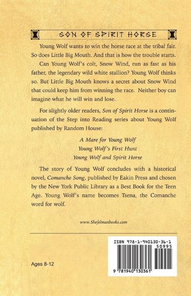 Young Wolf wants to win the horse race at the tribal fair. So does Little Big Mouth. And that is how the trouble starts. Can Young Wolf's colt, Snow Wind, run as fast as his father, the legendary wild white stallion? Young Wolf thinks so. But Little Big Mouth knows a secret about Snow Wind that could keep him from winning the race. Neither boy can imagine what he will win or lose. For slightly older readers, Son of Spirit Horse is a continuation of the Step into Reading series about Young Wolf. The story of Young Wolf concludes with a historical novel, "Comanche Song," published by Eakin Press and chosen by the New York Public Library as a "Best Book for the Teen Age." Young Wolf's name becomes Tsena, the Comanche word for wolf.