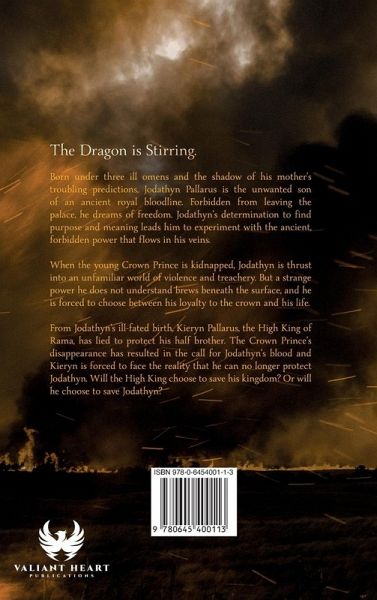 Born under three ill omens and the shadow of his mother's troubling predictions, Jodathyn Pallaurs is the unwanted son of an ancient royal bloodline. Forbidden from leaving the palace, he dreams of freedom. Jodathyn's determination to find purpose and meaning leads him to experiment with the ancient, forbidden power that flows in his veins. When the young Crown Prince is kidnapped, Jodathyn is thrust into an unfamiliar world of violence and treachery. But a strange power he does not understand brews beneath the surface and he is forced to choose between his loyalty to the crown and his life. From Jodathyn's ill-fated birth Kieryn Pallarus, the High King of Rama, has lied to protect his half-brother. The Crown Prince's disappearance has resulted in the call for Jodathyn's blood and Kieryn is forced to face the reality that he can longer protect Jodathyn. Will the High King choose to save his kingdom? Or will he choose to save Jodathyn?