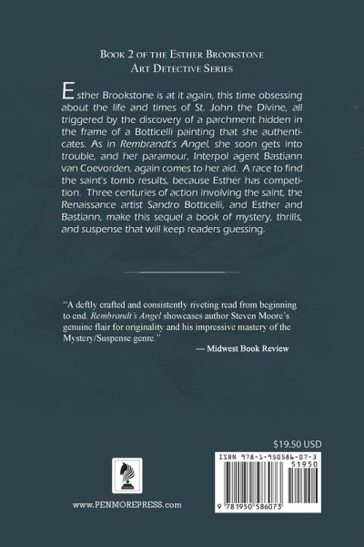 Esther Brookstone is at it again, this time obsessing about the life and times of St. John the Divine, all triggered by the discovery of a parchment hidden in the frame of a Botticelli painting that she authenticates. As in Rembrandt's Angel, she soon gets into trouble, and her paramour, Interpol agent Bastiann van Coevorden, again comes to her aid. A race to find the saint's tomb results, because Esther has competition. Three centuries of action involving the saint, the Renaissance artist Sandro Botticelli, and Esther and Bastiann, make this sequel a book of mystery, thrills, and suspense that will keep readers guessing.