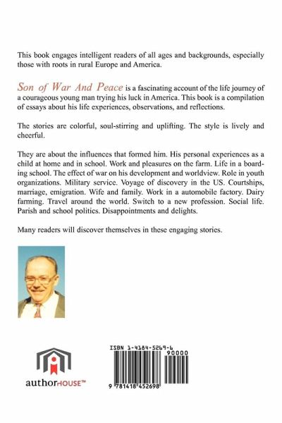 This book engages intelligent readers of all ages and backgrounds, especially those with roots in rural Europe and America. SON OF WAR AND PEACE is a fascinating account of the life journey of a courageous young man trying his luck in America. This book is a compilation of essays about his life experiences, observations, and reflections. The stories are colorful, soul-stirring and uplifting. The style is lively, buoyant and cheerful. They are about the influences that formed him. His personal experiences as a boarding school. The effect of war on his development and worldview. Role in youth organizations. Military service. Voyage of discovery in the US. Courtships, marriage, emigration. Wife and family. Work in a car factory. Dairy farming. Travel around the world. Switch to a new profession. Social life. Parish and school politics. Disappointments and delights. Many readers will find themselves in these engaging stories. Dedicated to Alice who generously supported me in this effort & our children: Marianne, Guido, Marleen, Leanne, Christiana, Diana, Nelly, Rosemary & Grandchildren and their descendants.