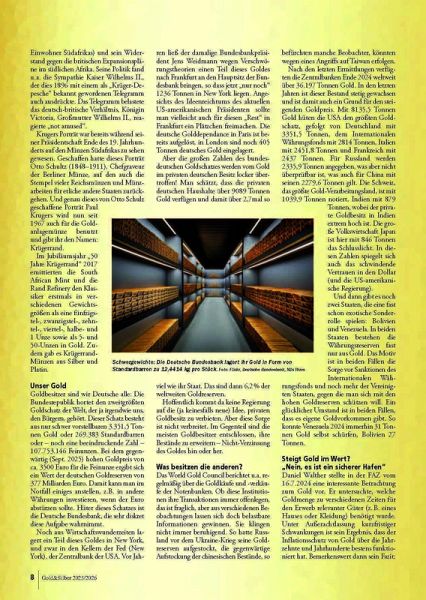 Der Goldpreis rast von einem Allzeithoch zum nächsten. Kann man sich das noch leisten? Soll man es sich noch leisten? Was steckt dahinter? Es gibt viele Fragen und viele Antworten. Ist man Sammler historischer Münzen? Oder geht es um Bullionmünzen? Oder um Anlagegold in Barrenform? Um Schmuck vielleicht?Gold ist ein spannendes Thema, das die Menschen seit Jahrtausenden fasziniert. Viel Geheimnisvolles rankt sich um dieses Metall, das oft als Inbegriff von Wert und von Beständigkeit gesehen wird. Länder- und kulturübergreifend steht Gold für Sicherheit, materielle und immaterielle: Wenn Aktien, Bankguthaben und andere Geldanlagen gefährdet erscheinen, wird gerne der "sichere Hafen" Gold angelaufen; goldene Ringe symbolisieren in vielen Kulturen und Zeiten eine feste, unverbrüchliche Beziehung zwischen Menschen.Die Geschichte des Goldes und seine Fakten werden in diesem gemeinsamen Sonderheft der Zeitschriften "MünzenRevue" und "Münzen & Sammeln" zusammengestellt, Goldmünzen aus verschiedenen Epochen mit Blick auf den Sammler und Anleger untersucht. Der Blick richtet sich in die Welt der (Zentral-)Banken und der Sammlerschatullen. Der Mythos des Goldes wirkt weiter, wird im vorliegenden Sonderheft aber um die Realität ergänzt. Die hier zusammengetragenen Fakten erleichtern den Zugang zum Thema und helfen bei der Fehlervermeidung. Viel Spaß mit dem Faszinosum GOLD!