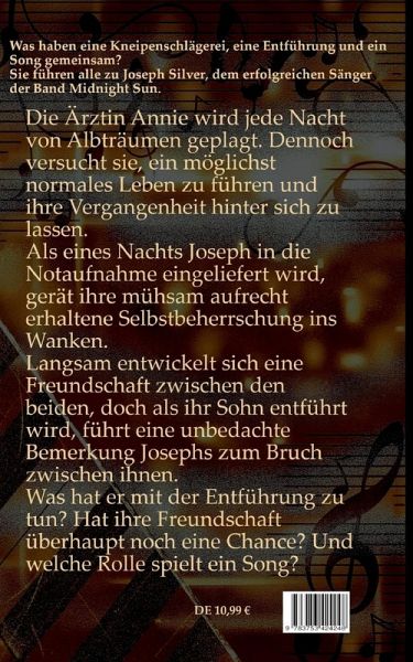 Was haben eine Kneipenschlägerei, eine Entführung und ein Song gemeinsam? - Sie führen alle zu Joseph Silver, dem erfolgreichen Sänger der Band Midnight Sun.Die Ärztin Annie wird jede Nacht von Albträumen geplagt. Dennoch versucht sie, ein möglichst normales Leben zu führen und ihre Vergangenheit hinter sich zu lassen.Als eines Nachts Joseph in die Notaufnahme eingeliefert wird, gerät ihre mühsam aufrecht erhaltene Selbstbeherrschung ins Wanken.Langsam entwickelt sich eine Freundschaft zwischen den beiden, doch als ihr Sohn entführt wird, führt eine unbedachte Bemerkung Josephs zum Bruch zwischen ihnen.Was hat er mit der Entführung zu tun? Hat ihre Freundschaft überhaupt noch eine Chance? Und welche Rolle spielt ein Song?