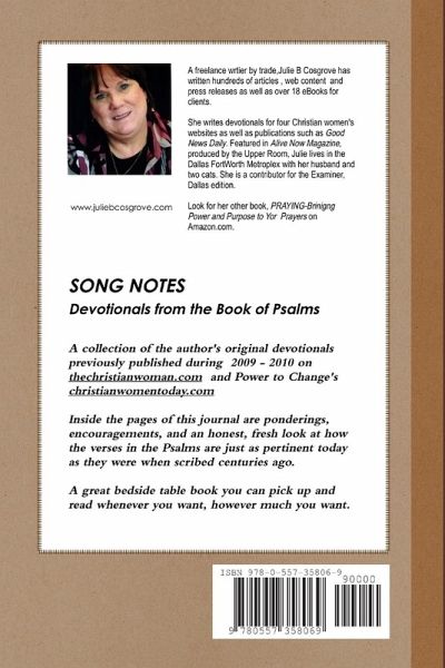 A collection of original devotionals featured on two Christian women's websites, Song Notes is a fresh look at the Psalms, proving their message is as pertinent today as when scribed centuries ago. A great bedside table book to read whenever and however much you want, or for use as a Bible study guide.