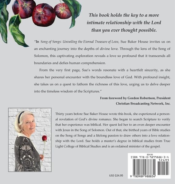 In Song of Songs: Unveiling the Eternal Treasure of Love, Sue Baker House invites us on an enchanting journey into the depths of divine love. Through the lens of the Song of Solomon, this captivating exploration reveals a love so profound that it transcends all boundaries and defies human comprehension. From the very first page, Sue's words resonate with a heartfelt sincerity, as she shares her personal encounter with the boundless love of God. With profound insight, she takes us on a quest to fathom the richness of this love, urging us to delve deeper into the timeless wisdom of the Scriptures. This book is much more than a Bible study or commentary. It is the fruit of the author's thirty-year exploration of the hidden recesses of this beautiful and mysterious love poem. Sue's verse-by-verse insights and revelations are enhanced by her personal anecdotes interspersed throughout. Beautiful illustrations by artist Zani Inder draw the reader even deeper into the love story. This book is a must-read for anyone who seeks a deeper relationship with Jesus Christ, the Bridegroom.