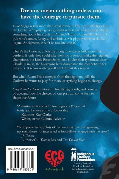 Dreams mean nothing unless you have the courage to pursue them. Luke Miggs wants more than small-town life: the grind of chores on the family farm, playing footy, drinks with friends. Like maybe doing something about his crush on Amanda Hunt, a barmaid at the local pub who's smart, funny, and ambitious. Or playing footy in the big league. At eighteen, it can't be too late, can it? There's the Curlews, at least, although the team's little more than battlers. If only they could take their footy seriously, like the reigning champions, the Little Reach Scorpions. Under their tyrannical coach, Claude Rankin, the Scorpions have dominated the competition for ten years. It seems nothing will be different this season. But when Adam Pride emerges from the night and tells the Curlews he wants to play for them, everything begins to change. Song of the Curlew is a story of friendship, bonds, and coming of age, and how the choices of our past can come back to shape our future.