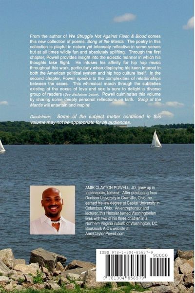 From the author of We Struggle Not Against Flesh & Blood comes this new collection of poems, Song of the Mantis. The poetry in this collection is playful in nature yet intensely reflective in some verses but at all times wildly fun and absolutely uplifting. Through the first chapter, Powell provides insight into the eclectic manner in which his thoughts take flight. He infuses his affinity for hip hop music throughout this work, particularly when displaying his keen interest in both the American political system and hip hop culture itself. In the second chapter, Powell speaks to the complexities of relationships between the sexes. This whimsical march through the subtleties existing at the nexus of love and sex is sure to delight a diverse group of readers. Powell culminates this volume by sharing some deeply personal reflections on faith. Song of the Mantis will entertain and inspire! Disclaimer: Some of the subject matter contained in this volume may not be appropriate for all audiences.