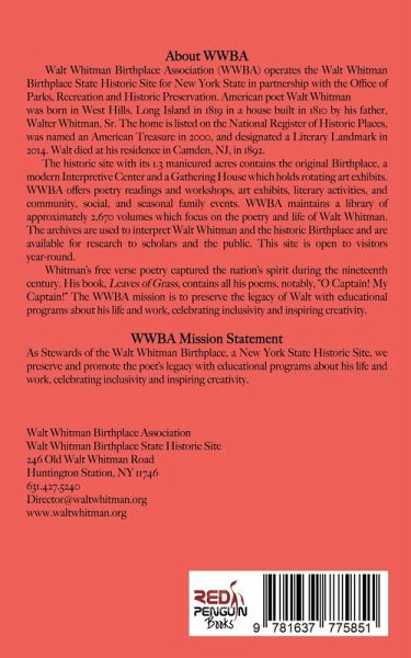 The Walt Whitman Birthplace Association (WWBA) Board of Trustees and I congratulate the student poets in this anthology for their writing excellence! Each student internalized Whitman's poetic sentiments of Song of the Open Road and created a unique response shaped in their own free verse poetry. We invite you to step into their world through the vision, words, and images of the honorees of our 38th Annual 2024 Student Poetry Writing Contest.