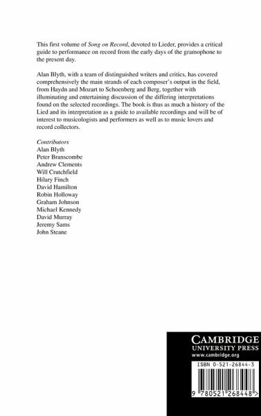 This first volume of Song on Record, devoted to Lieder, provides a critical guide to performance on record from the early days of the gramophone to the present day. Alan Blyth, with a team of distinguished writers and critics, has covered comprehensively the main strands of each composer's output in the field, from Haydn and Mozart to Schoenberg and Berg, together with illuminating and entertaining discussion of the differing interpretations found on the selected recordings. The book is thus as much a history of the Lied and its interpretation as a guide to available recordings and will be of interest to musicologists and performers as well as to music lovers and record collectors.