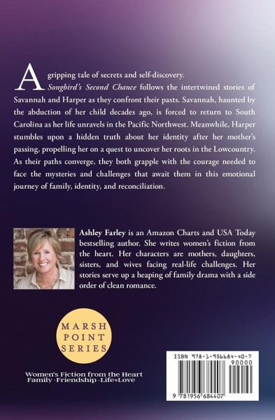 Ashley Farley writes heartfelt stories about women navigating life's challenges. Her characters-mothers, daughters, sisters, and wives-face real-life struggles with resilience and grace. Best known for her Sweeney Sisters series, Ashley's books have touched the hearts of readers far and wide.A wife and mother of two young adults, for more than two decades, Ashley has split her time between Richmond and the Northern Neck of Virginia. Yet, a piece of her heart will always belong to the South Carolina Lowcountry, where she draws inspiration from the moss-draped oaks, coastal cuisine, and the warm, welcoming spirit of its people.