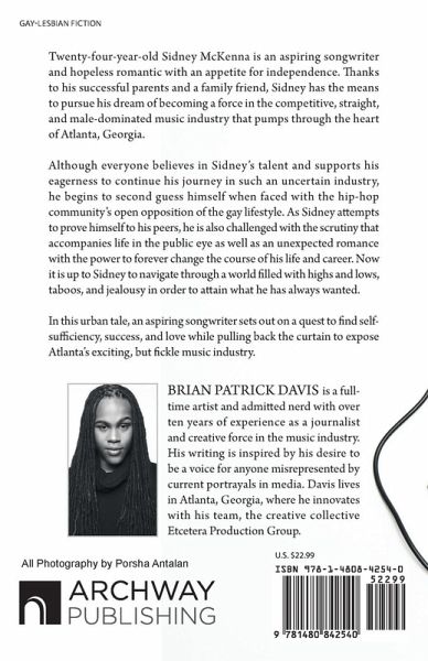 Twenty-four-year-old Sidney McKenna is an aspiring songwriter and hopeless romantic with an appetite for independence. Thanks to his successful parents and a family friend, Sidney has the means to pursue his dream of becoming a force in the competitive, straight, and male-dominated music industry that pumps through the heart of Atlanta, Georgia. Although everyone believes in Sidney’s talent and supports his eagerness to continue his journey in such an uncertain industry, he begins to second guess himself when faced with the hip-hop community’s open opposition of the gay lifestyle. As Sidney attempts to prove himself to his peers, he is also challenged with the scrutiny that accompanies life in the public eye as well as an unexpected romance with the power to forever change the course of his life and career. Now it is up to Sidney to navigate through a world filled with highs and lows, taboos, and jealousy in order to attain what he has always wanted. In this urban tale, an aspiring songwriter sets out on a quest to find self-sufficiency, success, and love while pulling back the curtain to expose Atlanta’s exciting, but fickle music industry.