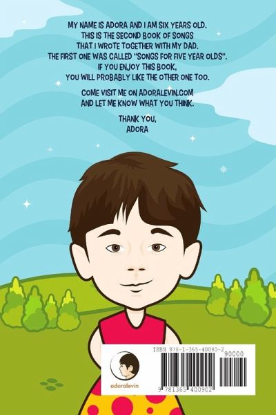 Adora is a 6 year old girl, living with her dad in Southern California. This is Adora's second book and it includes 24 fun songs for other six year olds. Adora is the inspiration for 1,000's of artists from all over the world who created original artworks based on her photos. She loves to cook on her YouTube cooking channel. She also likes to write little songs together with her dad. Follow her on www.adoralevin.com www.growababy.com www.instagram.com/adoralevin