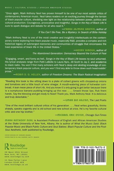 "Engaging, smart, and funny as hell, Songs in the Key of Black Life leaves no soul unturned. His lyrical analyses range from Patti Labelle to Laura Nyro, Jill Scott to Jay Z, academia to black radio. You won't find many scholars with Neal's deep and abiding knowledge of contemporary black popular culture, and you won't find any able to throw down such head-noddin' prose." -- Robin D. G. Kelley, author of Freedom Dreams: The Black Radical Imagination