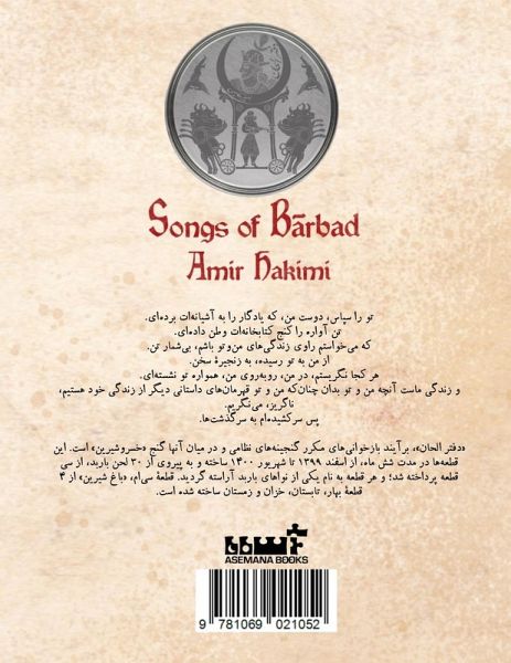 "Daftar-e Alhan" (Songs of Barbad) is the result of repeated readings of Nizami's treasures, particularly the gem Khosrow and Shirin. These pieces were composed over six months, from Esfand 1399 (February-March 2021) to Shahrivar 1400 (August-September 2021), inspired by Barbad's 30 melodies and crafted into thirty compositions, each adorned with the name of one of Barbad's melodies. The thirtieth piece, The Sweet Garden, consists of four parts-Spring, Summer, Autumn, and Winter-and each part is dedicated to one of the great contemporary Iranian directors. Amir Hakimi is a poet and a researcher of the history of New Persian poetry and the history of modernity in Iran. Hakimi has played a prominent role in the recovery of less-seen currents in the history of modern Persian poetry. By editing and contributing to the historiography of the works of several experimental poets, he has endeavored to convey and make their aesthetic experiences available to a generation of readers. Amir Hakimi is one of the writers who, despite being active in the fields of poetry, fiction, and literary and critical research for more than two decades, has refrained from publishing his writings through "officially licensed" means within Iran.