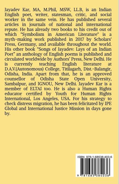 This anthology is the expression of personal feelings and objective truths as experienced by the mystic poet himself in this ephemeral and transitory world. The poems deal with pertinent themes and are didactic in nature. Some poems are written in couplet form whereas some others have been written just in blank verse. These poems depict the grim reality of contemporary society in a lucid manner. Thinking about a thing is one thing, writing the thought in the paper is yet another thing, and penning them down in charming poetic form is yet another thing and that has been done in the book. People from all walks of life including children can easily fathom the pith and substance of almost all poems.