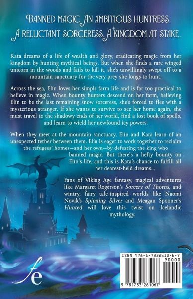 Banned magic. An ambitious huntress. A reluctant sorceress. A kingdom at stake. Kata dreams of a life of wealth and glory, eradicating magic from her kingdom by hunting mythical beings. But when she finds a rare winged unicorn in the woods and fails to kill it, she's unwillingly swept off to a mountain sanctuary for the very prey she longs to hunt. Across the sea, Elín loves her simple farm life and is far too practical to believe in magic. When bounty hunters descend on her farm, believing Elín to be the last remaining snow sorceress, she's forced to flee with a mysterious stranger. If she wants to survive to see her home again, she must travel to the shadowy ends of her world, find a lost book of spells, and learn to wield her newfound icy powers. When they meet at the mountain sanctuary, Elín and Kata learn of an unexpected tether between them. Elín is eager to work together to reclaim the refugees' homes-and her own-by defeating the king who banned magic. But there's a hefty bounty on Elín's life, and this is Kata's chance to fulfill all her dearest-held dreams... Fans of Viking Age fantasy, magical adventures like Margaret Rogerson's Sorcery of Thorns, and wintry, fairy tale-inspired worlds like Naomi Novik's Spinning Silver and Meagan Spooner's Hunted will love this twist on Icelandic mythology.