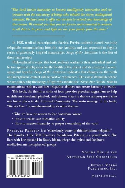 In 1987, medical transcriptionist Patricia Pereira suddenly started receiving telepathic communications from the star Arcturus and was requested to begin a series of galactically inspired manuscripts. Songs of the Arcturians is the first of those manuscripts. Philosophical in scope, this book awakens readers to their individual and collective spiritual obligations for the health of the planet and its creatures. Encouraging and hopeful, Songs of the Arcturians indicate that changes on the Earth and intergalactic contact will be positive experiences. The essays illuminate where we are going, why the beings of light who inhabit the great star nation wish to communicate with us, and how telepathic abilities can create harmony on Earth.