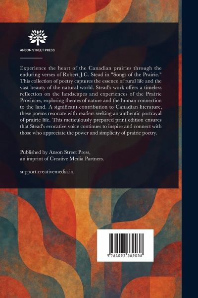Experience the heart of the Canadian prairies through the enduring verses of Robert J.C. Stead in "Songs of the Prairie." This collection of poetry captures the essence of rural life and the vast beauty of the natural world. Stead's work offers a timeless reflection on the landscapes and experiences of the Prairie Provinces, exploring themes of nature and the human connection to the land. A significant contribution to Canadian literature, these poems resonate with readers seeking an authentic portrayal of prairie life. This meticulously prepared print edition ensures that Stead's evocative voice continues to inspire and connect with those who appreciate the power and simplicity of prairie poetry. This work has been selected by scholars as being culturally important, and is part of the knowledge base of civilization as we know it. This work is in the public domain in the United States of America, and possibly other nations. Within the United States, you may freely copy and distribute this work, as no entity (individual or corporate) has a copyright on the body of the work. Scholars believe, and we concur, that this work is important enough to be preserved, reproduced, and made generally available to the public. We appreciate your support of the preservation process, and thank you for being an important part of keeping this knowledge alive and relevant.