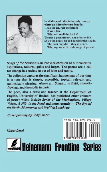 These poems from one of Africa's most highly acclaimed poets and the winner of the 1991 Noma Award for Publishing in Africa, are an ironic celebration of collective aspirations, failures, guilts and hopes. They call for change in a society wracked with problems. The poet sets out to produce a collection that captures the significant happenings of the time in a tune that is simple, accessible, topical, relevant, and artistically pleasing and, as he puts it: 'to remind kings about the corpses which line their way to the throne, to show the rich the slums which fester behind their castles, to praise virtue, denounce vice, to mirror the triumphs and travails of the downtrodden, to celebrate the green glory of the rainy season and the brown accent of the dry, to distil poetry from the dust and clay of the vast, prodigious land - songs plucked from the lips of my land in its manifold laughters and sorrows.'