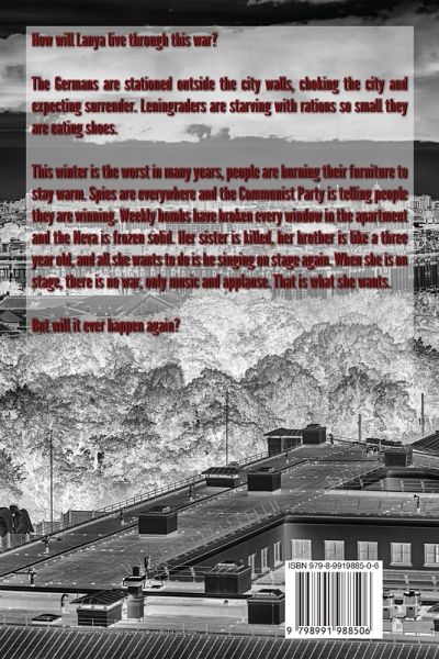 How will Lanya live through this war? The Germans are stationed outside the city walls, choking the city and expecting surrender. Leningraders are starving with rations so small they are eating shoes. This winter is the worst in many years, people are burning their furniture to stay warm. Spies are everywhere and the Communist Party is telling people they are winning. Weekly bombs have broken every window in the apartment and the Neva is frozen solid. Her sister is killed, her brother is like a three year old, and all she wants to do is be singing on stage again. When she is on stage, there is no war, only music and applause. That is what she wants. But will it ever happen again?
