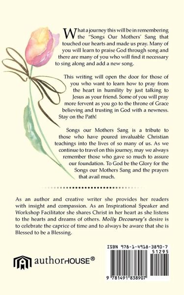 What a journey this will be in remembering the "Songs Our Mothers' Sang that touched our hearts and made us pray. Many of you will learn to praise God through song and there are many of you who will find it necessary to sing along and add a new song. This writing will open the door for those of you who want to learn how to pray from the heart in humility by just talking to Jesus as your friend. Some of you will pray more fervent as you go to the throne of Grace believing and trusting in God with a newness. Stay on the Path! Songs our Mothers Sang is a tribute to those who have poured invaluable Christian teachings into the lives of so many of us. As we continue to travel on this journey, may we always remember those who gave so much to assure our foundation. To God be the Glory for the Songs our Mothers Sang and the prayers that avail much.