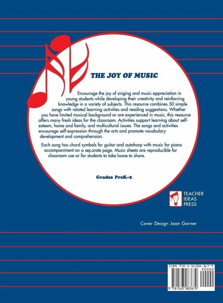 Develop creativity in students and reinforce learning in a variety of subjects through the joy of music. This resource combines 50 simple songs with related learning activities and reading suggestions. Each song has chord symbols for guitar and autoharp, with music for piano accompaniment on a separate page. Activities that support learning about self-esteem, home and family, and multicultural issues are accompanied by reproducible music sheets that can be used in the classroom or taken home by students. As song lyrics are written or learned, they encourage self-expression through the arts and promote vocabulary development and comprehension. Most of all, they encourage the joy of singing. Whether you have a limited musical background or are experienced in music, this resource has many classroom applications. Grades PreK-2.