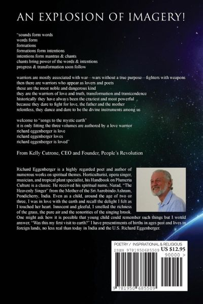 Warriors are mostly associated with wars, wars without a true purpose, fighters with weapons. Then there are warriors who appear as lovers and poets; these are the most noble and dangerous kind. They are the warriors of love and truth, transformation and transcendence. Historically they have always been the craziest and most powerful because they dare to fight for love, the father and the mother relentlessly, they dance and dare to be the divine instruments among us. An explosion of imagery, welcome to Songs to the Mystic Earth.