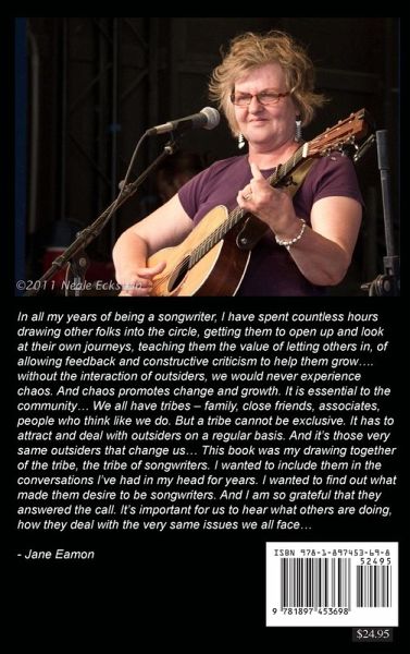 An absolutely superb book - Jane Eamon, Ian Thomas, Shari Ulrich, Stephen Fearing, Mae Moore, David Essig and many more songwriters - share their thoughts on what it means to be a songwriter... filled with insightful comments on their lives and love for their craft - a truly engaging and captivating read - highly recommended - Michael B Davie, author, Poetry for the Insane - The Full Mental From the author: In all my years of being a songwriter, I have spent countless hours drawing other folks into the circle, getting them to open up and look at their own journeys, teaching them the value of letting others in, of allowing feedback and constructive criticism to help them grow.... without the interaction of outsiders, we would never experience chaos. And chaos promotes change and growth. It is essential to the community... We all have tribes - family, close friends, associates, people who think like we do. But a tribe cannot be exclusive. It has to attract and deal with outsiders on a regular basis. And it's those very same outsiders that change us... This book was my drawing together of the tribe, the tribe of songwriters. I wanted to include them in the conversations I've had in my head for years. I wanted to find out what made them desire to be songwriters. And I am so grateful that they answered the call. It's important for us to hear what others are doing, how they deal with the very same issues we all face... - Jane Eamon