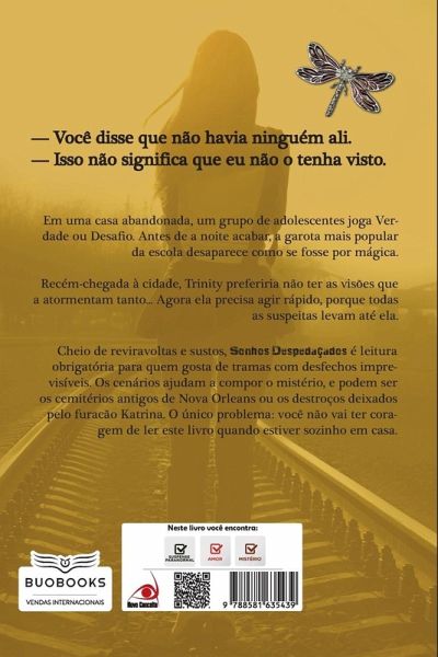 Em uma casa abandonada, um grupo de adolescentes joga Verdade ou Desafio. Antes de a noite acabar, a garota mais popular da escola desaparece como se fosse por mágica. Recém-chegada à cidade, Trinity preferiria não ter as visões que a atormentam tanto... Agora ela precisa agir rápido, porque todas as suspeitas levam até ela. Cheio de reviravoltas e sustos, "Sonhos Despedaçados" é leitura obrigatória para quem gosta de tramas com desfechos imprevisíveis. Os cenários ajudam a compor o mistério, e podem ser os cemitérios antigos de Nova Orleans ou os destroços deixados pelo furacão Katrina. O único problema: você não vai ter coragem de ler este livro quando estiver sozinho em casa.