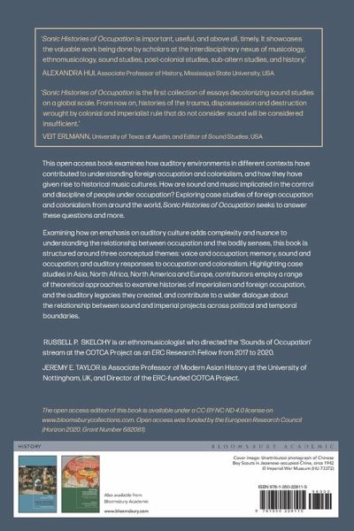 This open access book examines how auditory environments in different contexts have contributed to understanding foreign occupation and colonialism, and how they have given rise to historical music cultures. How are sound and music implicated in the control and discipline of people under occupation? Exploring case studies of foreign occupation and colonialism from around the world, Sonic Histories of Occupation seeks to answer these questions and more. Examining how an emphasis on auditory culture adds complexity and nuance to understanding the relationship between occupation and the bodily senses, this book is structured around three conceptual themes: voice and occupation; memory, sound and occupation; and auditory responses to occupation and colonialism. Highlighting case studies in Asia, North Africa, North America and Europe, contributors employ a range of theoretical approaches to examine histories of imperialism and foreign occupation, and the auditory legacies they created, and contribute to a wider dialogue about the relationship between sound and imperial projects across political and temporal boundaries. The open access edition of this book is available under a CC-BY-NC-ND 4.0 license on www.bloomsburycollections.com. Open access was funded by the European Research Council (Horizon 2020, Grant Number 682081).