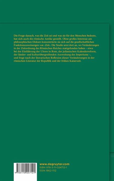 Thema dieses Buches ist weder die Philosophie der Zeit noch eine römische Chronologie, sondern eine Untersuchung der literarischen Reflexion der Zeitordnung in Rom. Es sagt wenig darüber, "wie es wirklich gewesen", und mehr darüber, wie diese Ordnung sprachlich konstituiert wurde, welche Metaphern sie hervorbrachte und welche Argumente im römischen Zeitdiskurs präsent waren. Wichtigstes Ziel ist die interpretatorische Erschließung der relevanten Texte und, daran anknüpfend, die Rekonstruktion des kulturellen Wissens in Bezug auf das tempus Romanum. Dieses Wissen konkretisiert sich in der Darstellung der beiden Organisationsinstrumente der Zeit, Kalender und Uhr; es wird in die Kulturentstehungslehren integriert, der Kulturkritik unterworfen, für das Selbstbild Roms in Anschlag gebracht und in einem aemulatio-Verhältnis zu Griechenland und Ägypten gesehen.