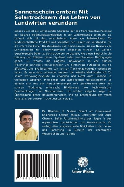 Dieses Buch ist ein umfassender Leitfaden, der das transformative Potenzial der solaren Trocknungstechnologien in der Landwirtschaft erforscht. Es befasst sich mit den verschiedenen Arten von Solartrocknern für landwirtschaftliche Produkte und vermittelt den Lesern ein Verständnis für die unterschiedlichen Konstruktionen und Mechanismen, die zur Nutzung der Sonnenenergie für Trocknungszwecke eingesetzt werden. Es werden experimentelle Daten zu Solartrocknern vorgestellt, die einen Einblick in die Leistung und Effizienz dieser Systeme unter verschiedenen Bedingungen geben. Es werden die jüngsten Innovationen in der solaren Trocknungstechnologie hervorgehoben und Fortschritte aufgezeigt, die die Effektivität und Skalierbarkeit von solaren Trocknungslösungen verbessert haben. Er kann dazu verwendet werden, die aktuelle Marktlandschaft für solare Trocknungsprodukte zu erkunden und bietet auch Einblicke in verfügbare Optionen, Preistrends und aufstrebende Marktteilnehmer. Er befasst sich mit den Herausforderungen und Zukunftsaussichten der solaren Trocknung, untersucht Hindernisse wie technologische Beschränkungen und Marktbarrieren und erörtert mögliche Wege zur Überwindung dieser Herausforderungen und zur Erschließung des vollen Potenzials der solaren Trocknungstechnologie.