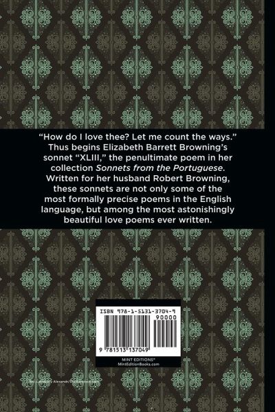 LARGE PRINT EDITION. Sonnets from the Portuguese (1850) is a collection of sonnets by English poet Elizabeth Barrett Browning. Written between 1845 and 1846, Sonnets from the Portuguese is a series of love poems written by Browning to her husband, the prominent Victorian poet Robert Browning. Although Elizabeth was initially unsure of the poems, Robert encouraged their publication, suggesting she title them to make readers believe they were translations and not personal declarations of love between the couple. Using the sonnet, Browning adopted a traditional form made famous by Shakespeare while staking a claim for herself as one of nineteenth century England's premier poets. Filled with references to the Greek pastoral poet Theocritus and the tragic figure Electra, as well as invocations to God, Sonnets from the Portuguese immerses itself in biblical and classical tradition while remaining deeply personal and authentically romantic. Sonnet "XV" addresses the inherent tragedy of love, the depth of sadness with which a lover beholds another with "Too calm and sad a face," overwhelmed with the knowledge that with love comes "the end of love, / Hearing oblivion beyond memory." In sonnet "XXVIII," Browning reflects on the distance between lovers kept apart: all she has of him are her letters, "all dead paper, mute and white!" And yet, "they seem alive and quivering" in her "tremulous hands," a living reminder of the man she longs to be with. "XLIII," the most famous sonnet of the collection, begins "How do I love thee? Let me count the ways," and records the poet's confession of a love more powerful than "the passion put to use / In [her] old griefs..." Not only has her lover brought her such joy, he has also given her a love she "seemed to lose / With [her] lost saints," a love strong enough to transcend religious faith entirely, a love that is destined to last, and to be even "better after death." With a beautifully designed cover and professionally typeset manuscript, this edition of Elizabeth Barrett Browning's Sonnets from the Portuguese is a classic of English literature reimagined for modern readers.