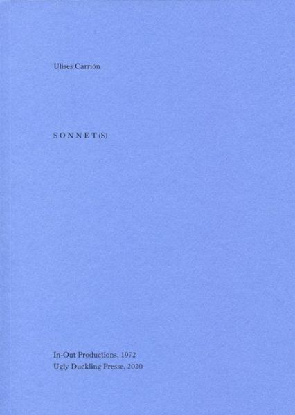 A lost gem of permutational conceptualism from a key figure in artist's book culture, available again Known internationally as one of Mexico's most important conceptual artists, Ulises Carrión (1941-89) played a decisive role in defining and conceptualizing the genre of the artists' book through his manifesto, "The New Art of Making Books" (1975), which he wrote soon after the 1972 publication of SONNET(S) and his move from Mexico City to Amsterdam, where he opened the legendary bookshop gallery, Other Books and So, the first space dedicated exclusively to artists' publications and an important precursor to such artists' book hubs as Printed Matter. One of Carrión's earliest "bookworks," SONNET(S) represents a landmark shift in the artist's output from poetry to artists' books. Here, Carrión takes a single poem by Dante Gabriel Rossetti through 50 typographic and procedural permutations. This republication is supplemented by new essays on Carrión's bookworks by contemporary artists, writers, and scholars from Mexico, Europe and the US.