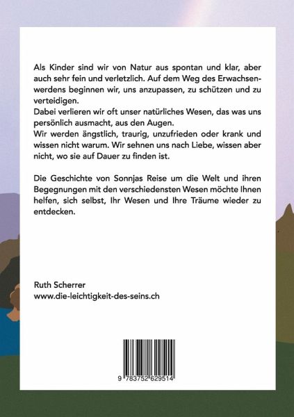 Als Kinder sind wir von Natur aus spontan und klar, aber auch sehr fein und verletzlich. Auf dem Weg des Erwachsenwerdens, beginnen wir, uns anzupassen, zu schützen und zu verteidigen. Dabei verlieren wir oft einen Teil unsers natürlichen Wesens, von dem was uns persönlich ausmacht, aus den Augen. Wir werden ängstlich, traurig, unzufrieden oder krank und wissen nicht warum. Wir sehnen uns nach Liebe, wissen aber nicht, wo sie auf Dauer zu finden ist.Die Geschichte von Sonnjas Reise um die Welt und ihren Begegnungen mit den verschiedensten Wesen, möchte Ihnen helfen, sich selbst, Ihr Wesen und Ihre Träume wieder zu entdecken.