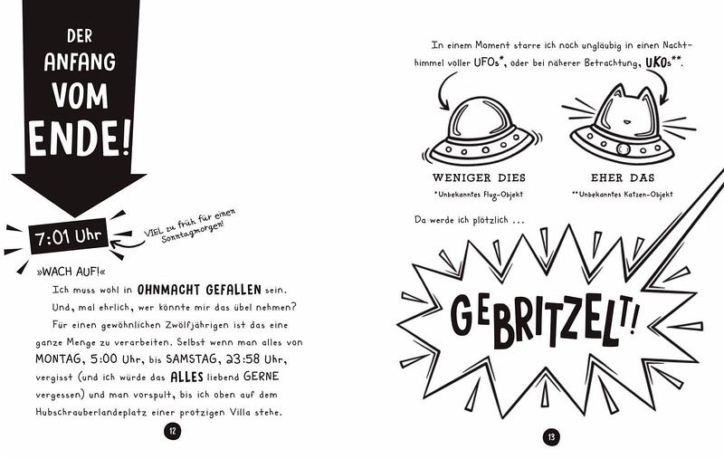 SONNTAG: Was für eine schreckliche Woche! Gerade als Justin Chase glaubt, dass nichts die furchtbaren Katastrophen von Montag, Dienstag, Mittwoch, Donnerstag, Freitag und Samstag (Zombie-Apokalypse - wir erinnern uns?!) übertreffen könnte, kommt ... der Sonntag. Und mit ihm eine Alien-Invasion! Das Schicksal des gesamten Planeten liegt jetzt ausschließlich auf Justins Schultern - und dabei schafft er noch nicht einmal einen Liegestütz ...
