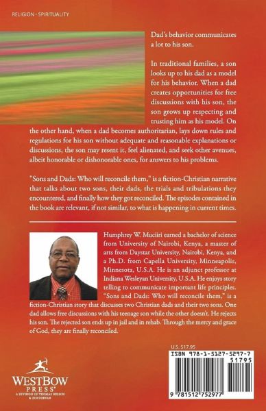 Dad's behavior communicates a lot to his son In traditional families, a son looks up to his dad as a model for his behavior. When a dad creates opportunities for free discussions with his son, the son grows up respecting and trusting him as his model. On the other hand, when a dad becomes authoritarian, lays down rules and regulations for his son without adequate and reasonable explanations or discussions, the son may resent it, feel alienated, and seek other avenues, albeit honorable or dishonorable ones, for answers to his problems. "Sons and Dads: Who will reconcile them," is a fiction-Christian narrative that talks about two sons, their dads, the trials and tribulations they encountered, and finally how they got reconciled. The episodes contained in the book are relevant, if not similar, to what is happening in current times.