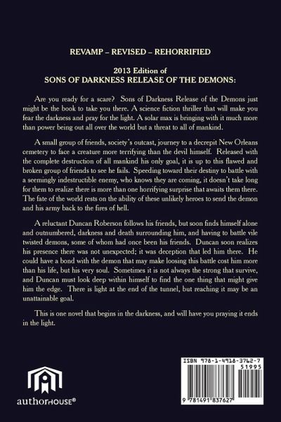 Are you ready for a scare? Sons of Darkness Release of the Demons just might be the book to take you there. A science fiction thriller that will make you fear the darkness and pray for the light. A solar max is bringing with it much more than power being out all over the world but a threat to all of mankind. A reluctant Duncan Roberson follows his friends, but soon finds himself alone and outnumbered, darkness and death surrounding him, and having to battle vile twisted demons, some of whom had once been his friend. Duncan soon realizes his presence there was not unexpected; it was deception that led him there. He could have a bond with the demon that may make loosing this battle cost him more than his life, but his very soul. Sometimes it is not always the strong that survive, and Duncan must look deep within himself to find the one thing that might give him the edge. There is light at the end of the tunnel, but reaching it may be an unattainable goal.