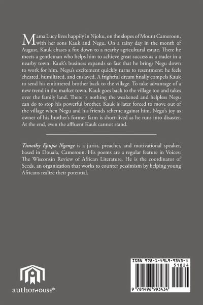 Mama Lucy lives happily in Njoku, on the slopes of Mount Cameroon, with her sons Kauk and Negu. On a rainy day in the month of August, Kauk chases a fox down to a nearby agricultural estate. There he meets a gentleman who helps him to achieve great success as a trader in a nearby town. Kauk?s business expands so fast that he brings Negu down to work for him. Negu?s excitement quickly turns to resentment: he feels cheated, humiliated, and enslaved. A frightful dream finally compels Kauk to send his embittered brother back to the village. To take advantage of a new trend in the market town, Kauk goes back to the village too and takes over the family land. There is nothing the weakened and helpless Negu can do to stop his powerful brother. Kauk is later forced to move out of the village when Negu and his friends scheme against him. Negu?s joy as owner of his brother?s former farm is short-lived as he runs into disaster. At the end, even the affluent Kauk cannot stand.