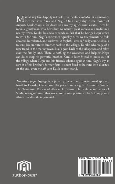 Mama Lucy lives happily in Njoku, on the slopes of Mount Cameroon, with her sons Kauk and Negu. On a rainy day in the month of August, Kauk chases a fox down to a nearby agricultural estate. There he meets a gentleman who helps him to achieve great success as a trader in a nearby town. Kauk?s business expands so fast that he brings Negu down to work for him. Negu?s excitement quickly turns to resentment: he feels cheated, humiliated, and enslaved. A frightful dream finally compels Kauk to send his embittered brother back to the village. To take advantage of a new trend in the market town, Kauk goes back to the village too and takes over the family land. There is nothing the weakened and helpless Negu can do to stop his powerful brother. Kauk is later forced to move out of the village when Negu and his friends scheme against him. Negu?s joy as owner of his brother?s former farm is short-lived as he runs into disaster. At the end, even the affluent Kauk cannot stand.