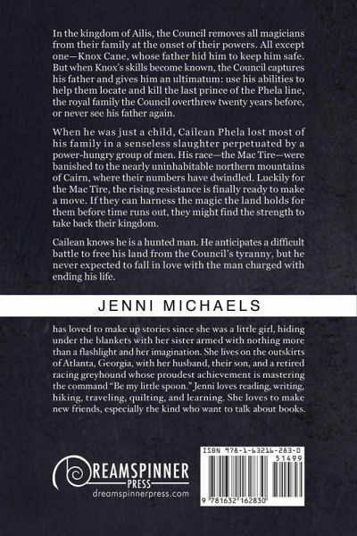 In the kingdom of Ailis, the Council removes all magicians from their family at the onset of their powers. All except one-Knox Cane, whose father hid him to keep him safe. But when Knox's skills become known, the Council captures his father and gives him an ultimatum: use his abilities to help them locate and kill the last prince of the Phela line, the royal family the Council overthrew twenty years before, or never see his father again. When he was just a child, Cailean Phela lost most of his family in a senseless slaughter perpetuated by a power-hungry group of men. His race-the Mac Tire-were banished to the nearly uninhabitable northern mountains of Cairn, where their numbers have dwindled. Luckily for the Mac Tire, the rising resistance is finally ready to make a move. If they can harness the magic the land holds for them before time runs out, they might find the strength to take back their kingdom. Cailean knows he is a hunted man. He anticipates a difficult battle to free his land from the Council's tyranny, but he never expected to fall in love with the man charged with ending his life.
