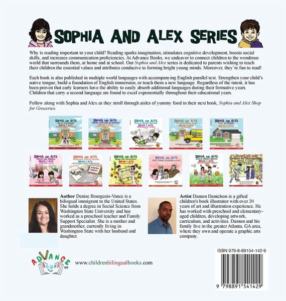 "Sophia and Alex Celebrate Winter Break" is one of eleven volumes in the "Sophia and Alex" series, written by Author Denise Bourgeois-Vance and illustrated by Artist Damon Danielson. The theme of the book centers on Sophia and Alex experiencing family traditions and recognizing other customs from cultures found around the world. The children learn that every tradition has value within a given culture or family and should be celebrated as each family wishes. The 32-page illustrated book shows varying types of customs, religions, and cultures so that children know that even though we don't all think, believe, or feel the same, that's ok. They learn at an early age that differences exist in the world, and this is what makes life so interesting. Each book in the "Sophia and Alex" series draws on storylines based on common events found in the life of an early learner. Children relate to the multi-cultural characters and learn the art of acceptance and inclusion in school and home settings. Through the use of dual text, the child can simultaneously learn to read in Portuguese or English while better expressing themselves in each. Studies prove that bilingual children are more apt to excel in writing and reading in subsequent grades when given the tools at an early age. At the time of this printing, over two dozen languages have been added to the series by the Children Bilingual Books' pool of translators. Parents and grandparents alike cherish the opportunity to connect with their child through reading in their native tongue. Why is reading important to your child? Reading sparks imagination, stimulates cognitive development, boosts social skills, and increases communication proficiencies. At Children Bilingual Books, we endeavor to connect children of all ethnicities, races, cultures, and languages with the wondrous world that surrounds them. The Sophia and Alex series provides a pathway to a child's understanding of language and social interaction. Moreover, they're fun to read!